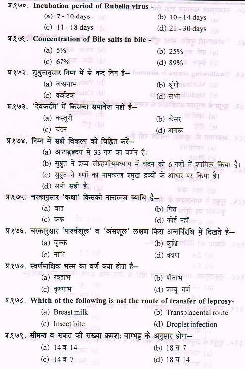 Sample Paper For Ayurveda PG Entrance Exam