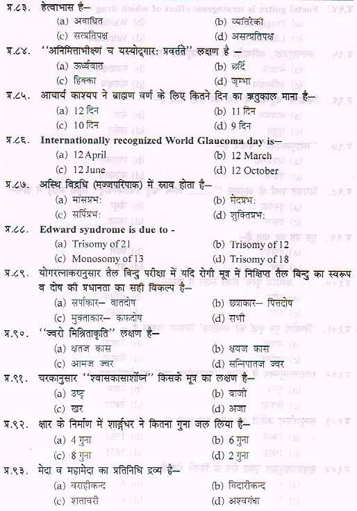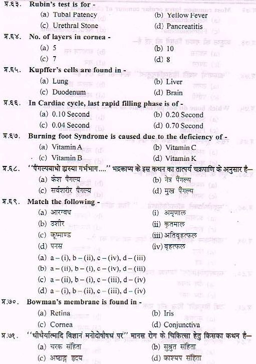 Sample Paper For Ayurveda PG Entrance Exam