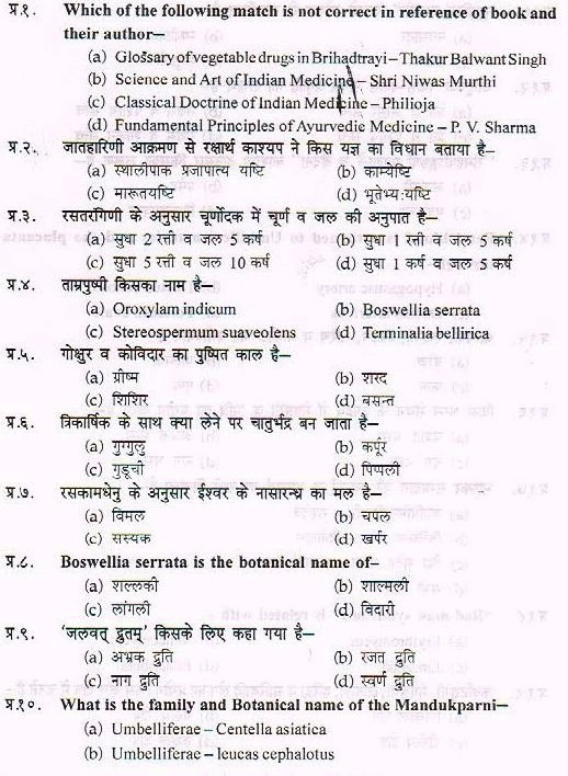 Sample Paper For Ayurveda PG Entrance Exam