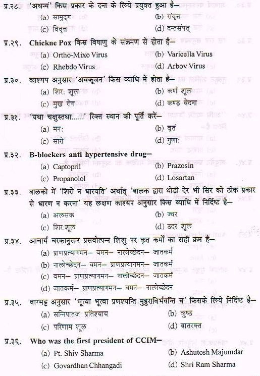 Sample Paper For Ayurveda PG Entrance Exam