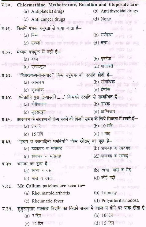 Sample Paper For Ayurveda PG Entrance Exam