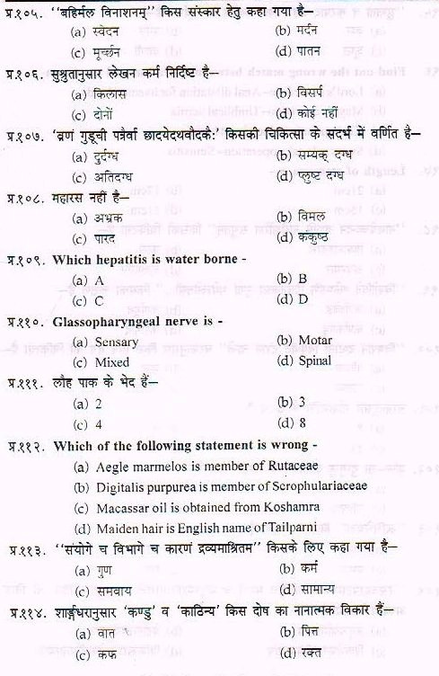 Sample Paper For Ayurveda PG Entrance Exam