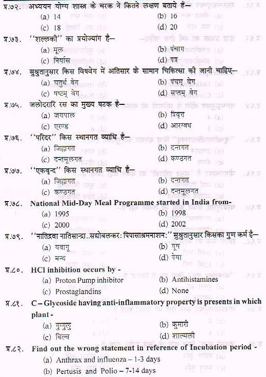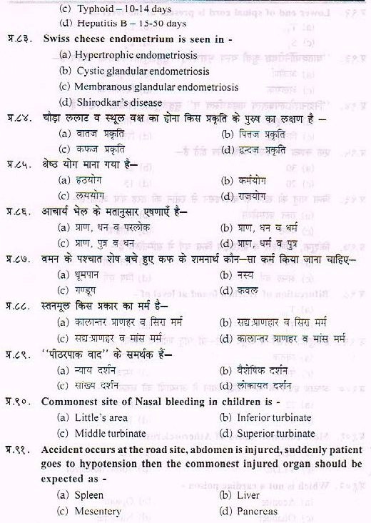 Sample Paper For Ayurveda PG Entrance Exam
