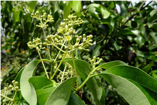 Eugenol, alpha - phellandrene, cinamic aldehyde, linalool, cineol, pinene