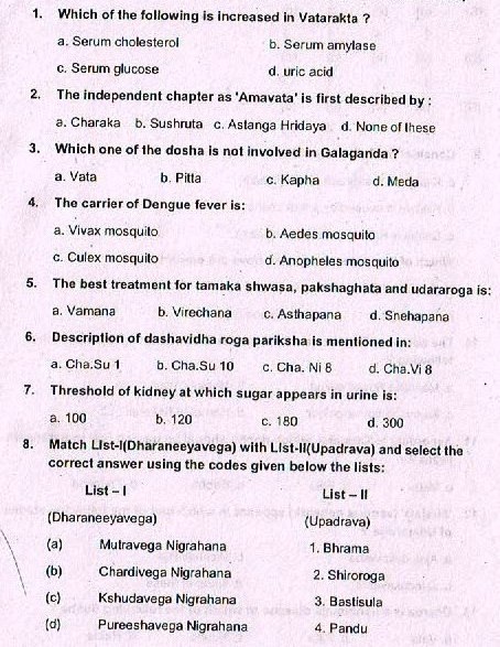 Ayurveda Medical Officer previous years question papers,ayurveda upsc previous years question papers,ayurveda previous years question papers