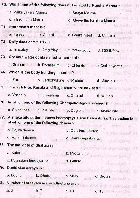 Ayurveda Medical Officer previous years question papers,ayurveda upsc previous years question papers,ayurveda previous years question papers