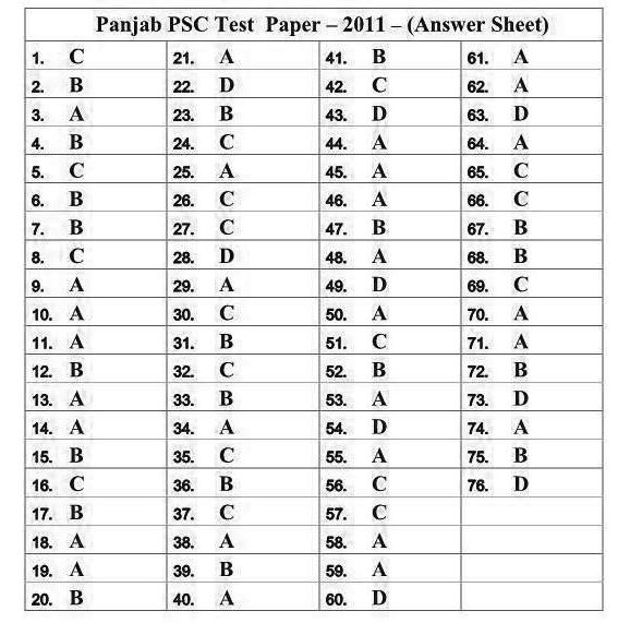 Panjab PSC Exam Paper