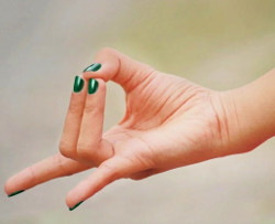 Bend the middle and ring fingers and gently touch their tips to the thumb tip.