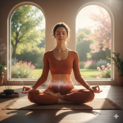 - Sit comfortably on a yoga mat or the floor in a relaxed position.