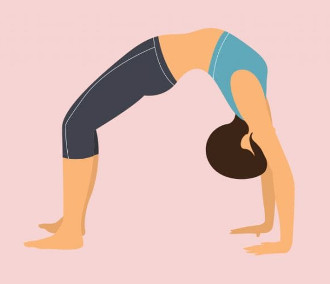 - Continue to bend until your palms touch the floor behind you, forming a semi-circle or wheel shape with your body.