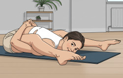 - Keep your head and neck between your legs, stretching your spine forward and keeping your legs as straight as possible.
