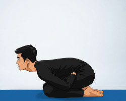 - Slowly bend both legs backward and sit in Vajrasana, with the feet placed under the buttocks.