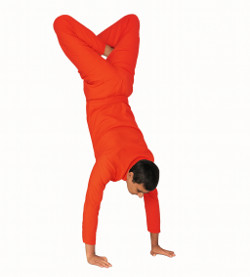 - Slowly begin to lift the crossed legs upward, balancing your weight over the palms.