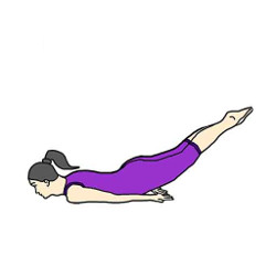 - In the final posture, keep your chin on the floor, and both legs raised upward and backwards in a straight line.