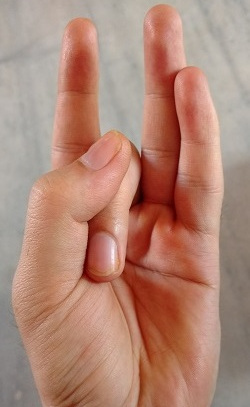 - Bend the middle finger so that its tip touches the base of the thumb.