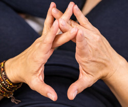 - Close your eyes and focus on the mudra. Feel the natural flow of energy and vibrations in your hands.