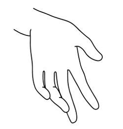 - Extend your left hand over the left knee with the palm facing forward and fingers pointing downward in a relaxed manner.